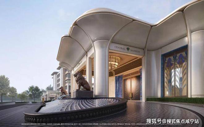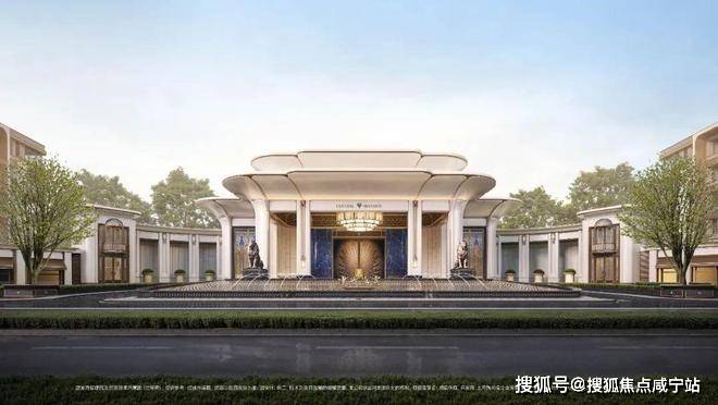」摩登飘逸,环抱式落客前场,大师定制非遗掐丝珐琅门钹,流转温润光华,敬呈归家尊崇礼序,自此启幕生活的华贵序章。