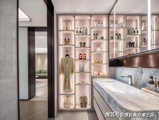 创新配备女神柜,分层分区分类收纳化妆品;通顶双面镜镜柜,有序安放洗护用品;左侧镜柜贴心设计美妆冰箱,低温保存,为美锁鲜,护肤、化妆更舒爽;台盆柜,大幅提升收纳空间,可储藏洗漱用品;扫地机也有专属预留空间,便捷归位。